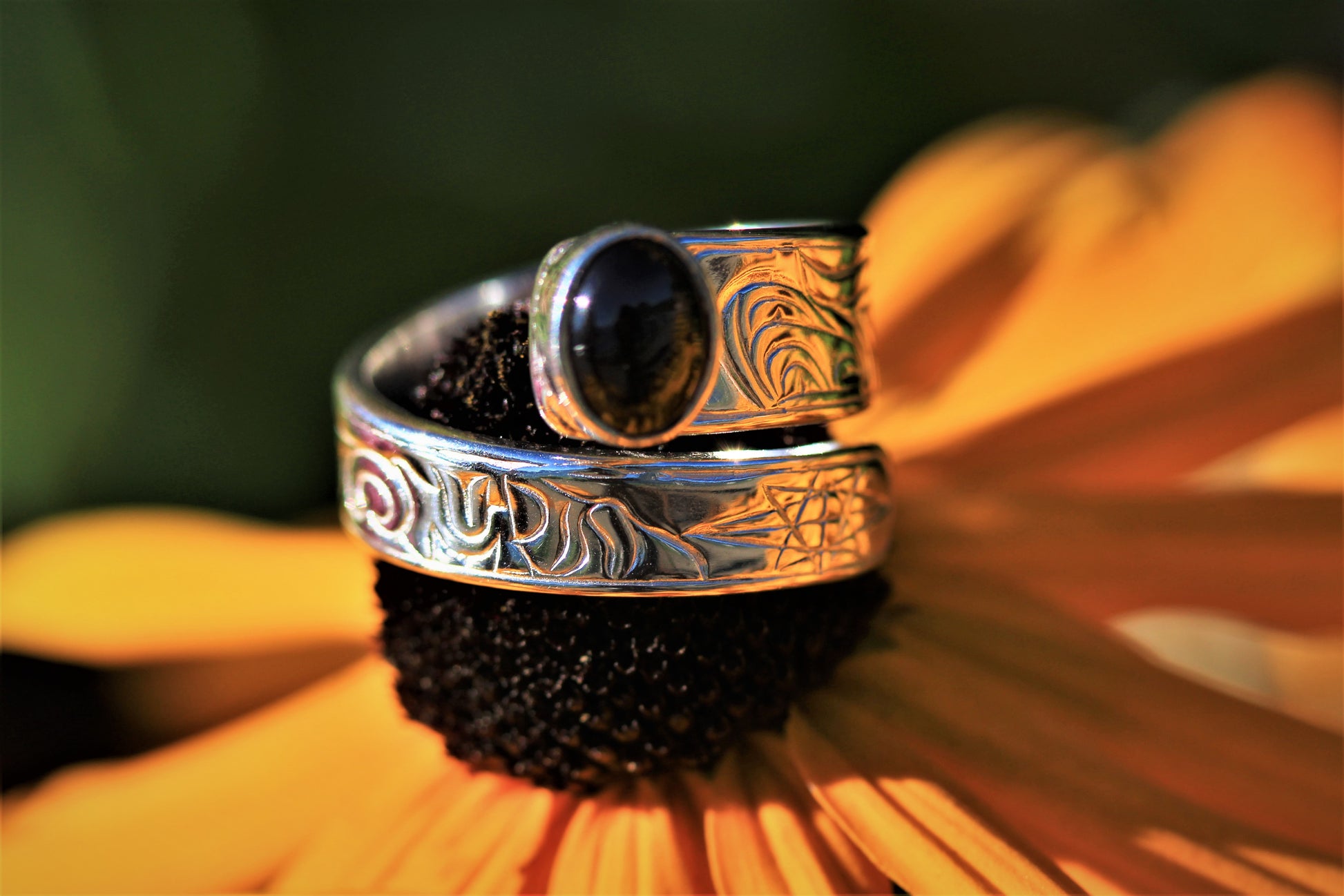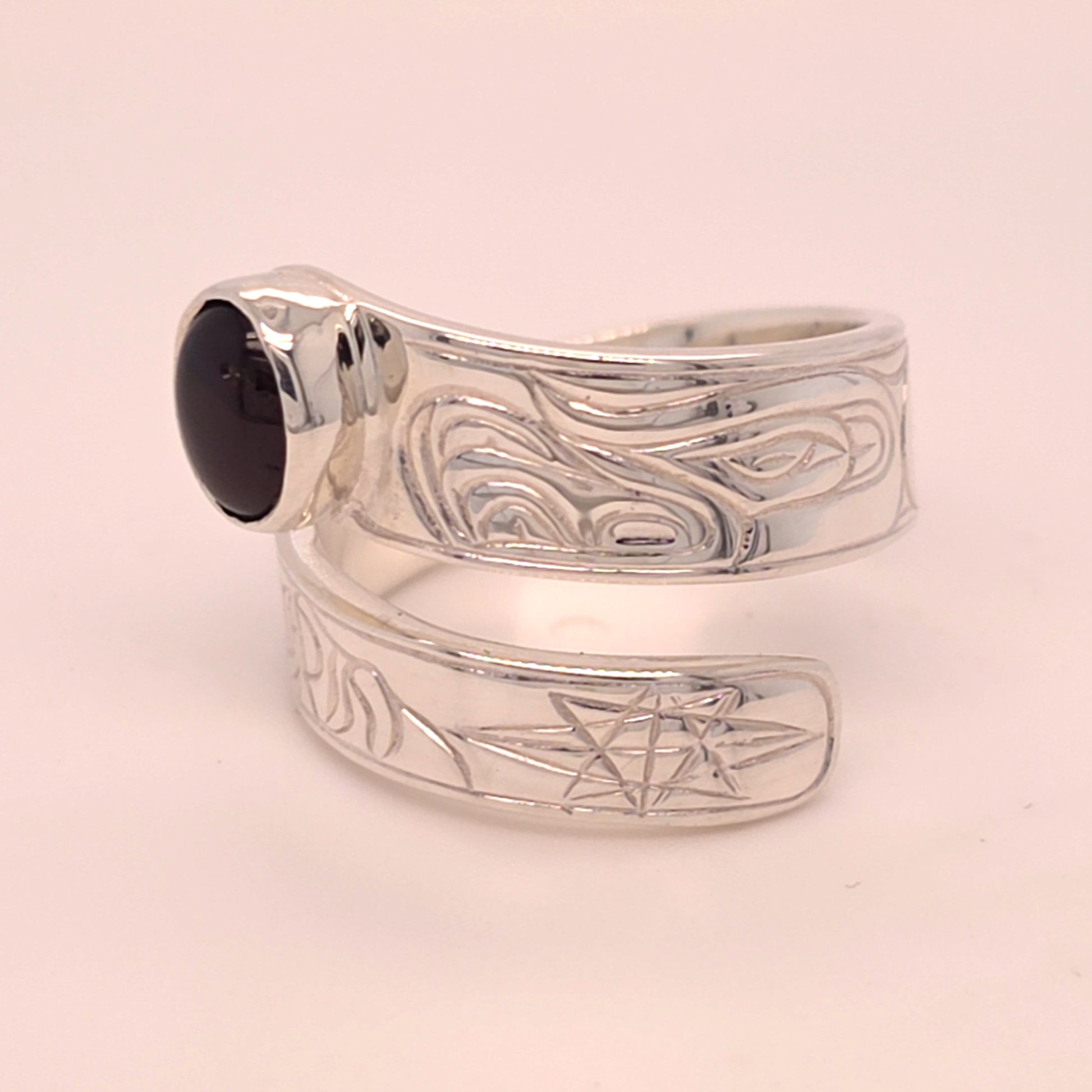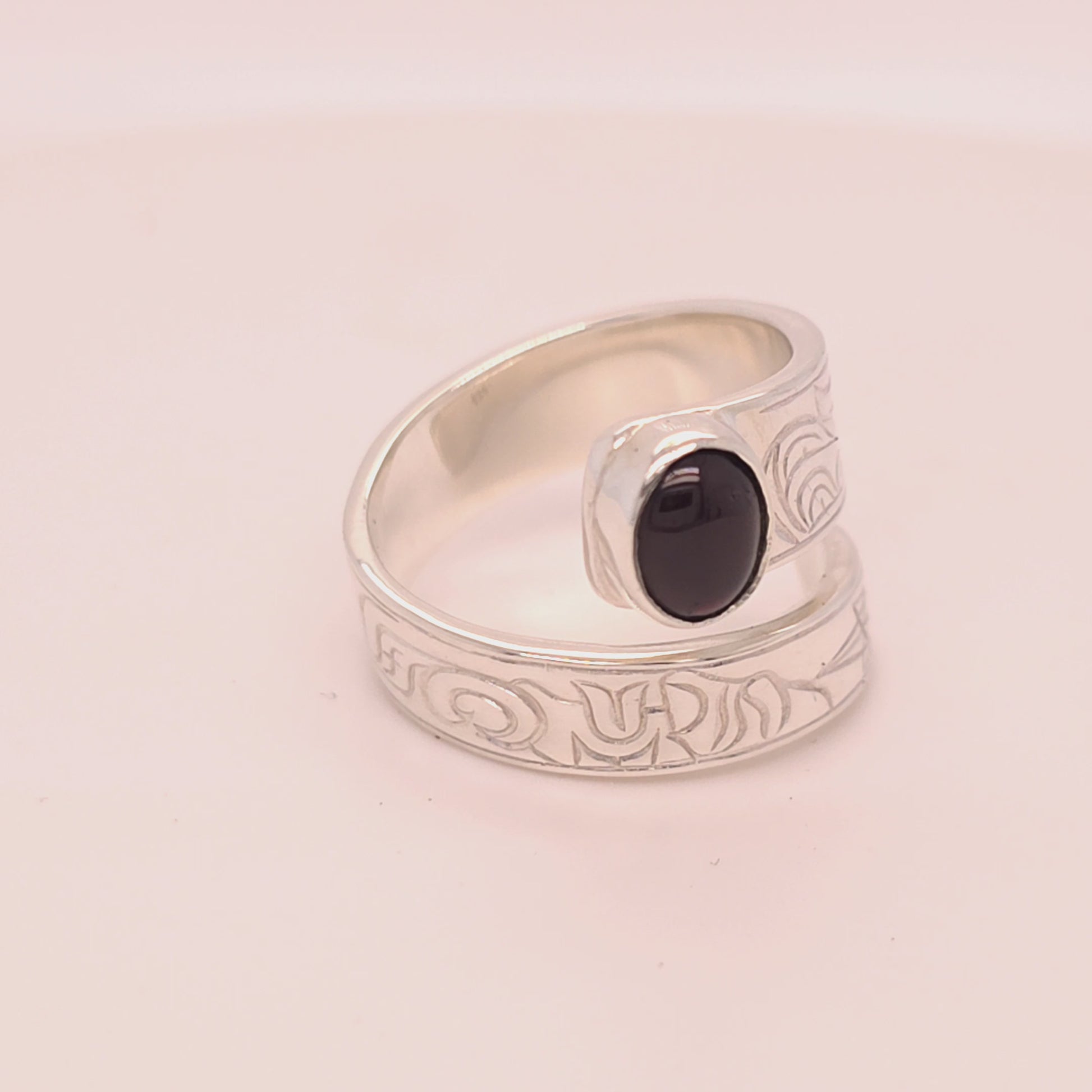 This adjustable wrap ring fits sizes 5 to 11.5, and the interior is hallmarked with .925, along with my artist initials, ensuring authenticity and intention.