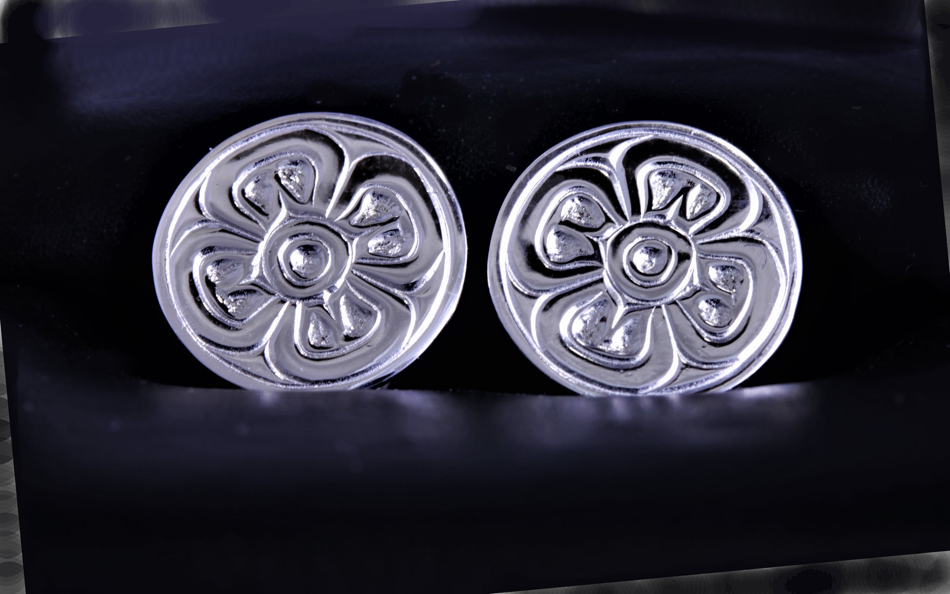 Jadeon does the flower design to honor Mother Earth. This particular design is in honor of his late grandmother Lady Of The Thunderbirds who did flower designs in her beadwork patterns.