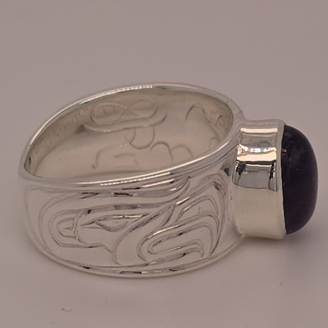 In this design, the Eagle is depicted offering a semi-precious stone — the physical representation of a prayer — to the Thunderbird. The stone is not just ornamental; it holds meaning. It is the vessel, the prayer itself, captured in flight. This ring serves as a reminder that our words, actions, and intentions carry weight — and that the spirit world listens when we offer them with truth and humility.