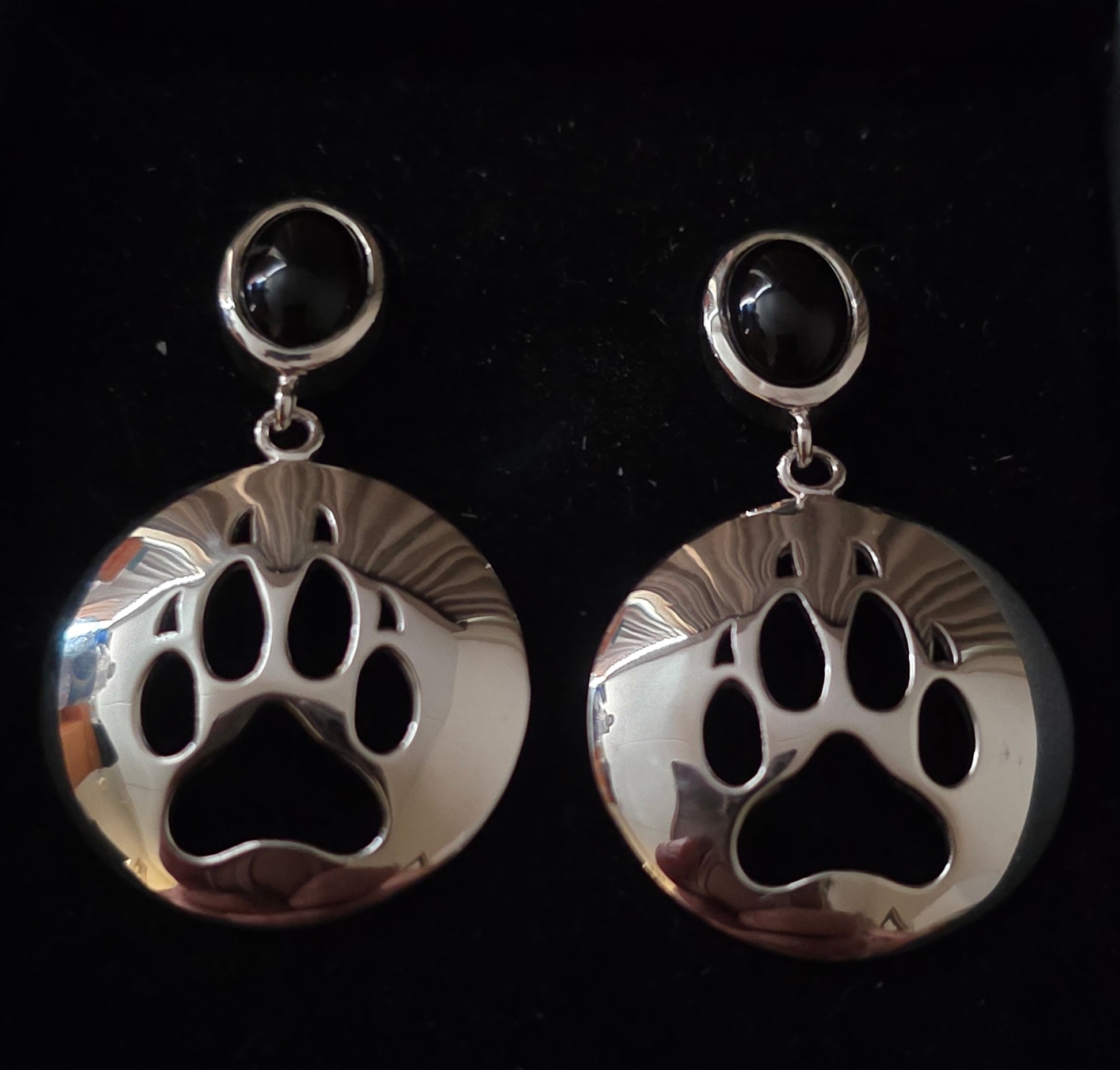 Wolf Paw Cut Out Silver Earrings Inlay Post